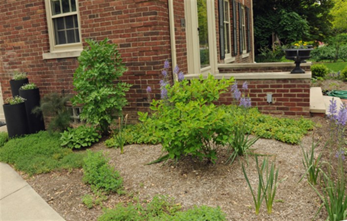 daffodils and blue quamash bulbs (Camassia cusickii 'Blue