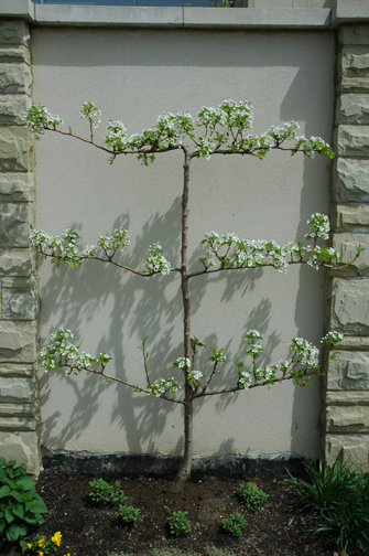 An espaliered pear tree.