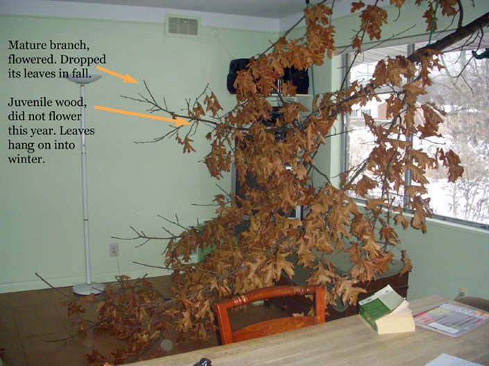 foliage all winter. Mature oaks almost always have some juvenile