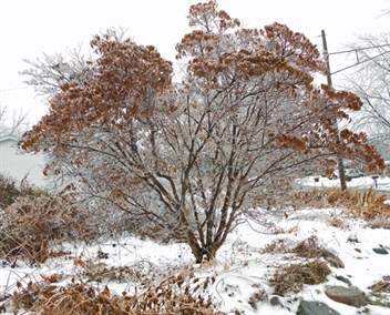 may need to prop iced branches or remove snow. (Right and