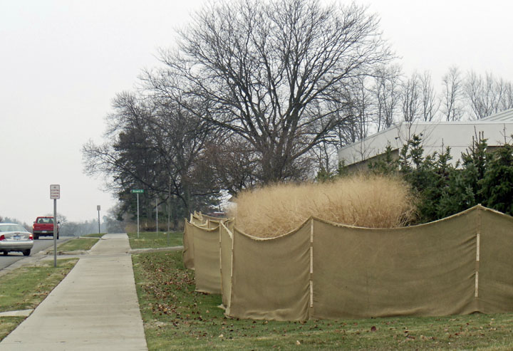 In this case, the tall perennial grasses (switch grass, Panicum virgatum) are themselves a very effective screen against salt and wind.