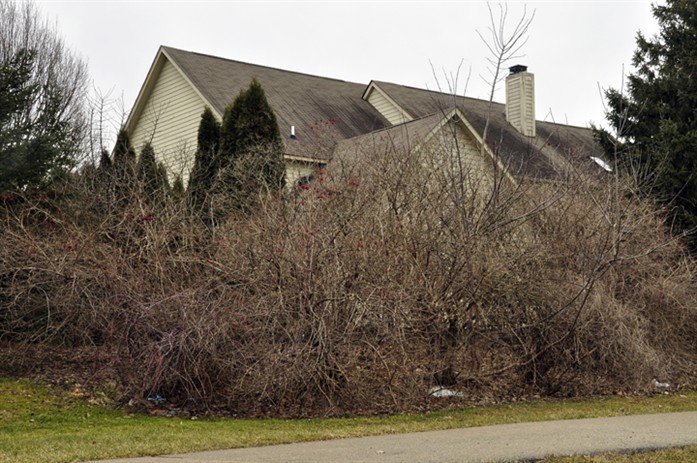Woody weeds insinuate themselves in hedges and shrub beds.