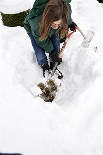making a path through the snow banks to break through to the garden