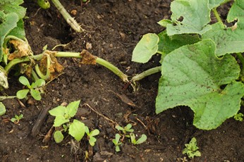 beetle, powdery mildew on squash, and damage from squash vine