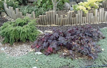 'Caramel,' and 'Obsidian' with a dwarf hemlock.