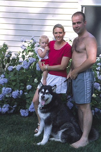 Tha malamute's owner, Sharon Mattioli (right, with daughter