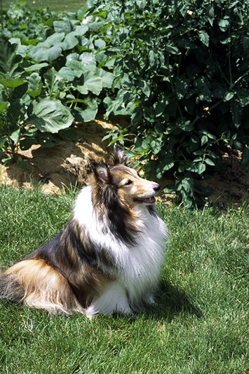 A Sheltie named Holly (right) exemplifies the tomato eaters.