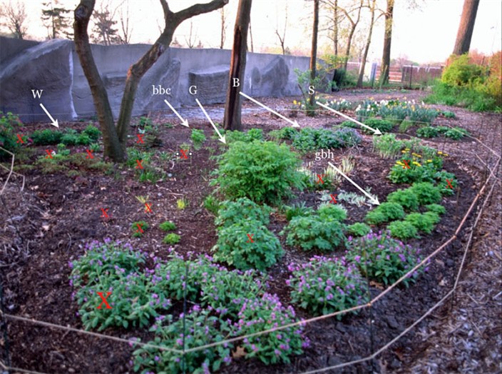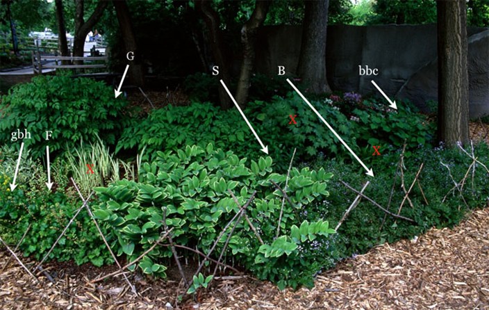 gbh - golden bleeding heart; S - sweet Solomon's seal; W - woody