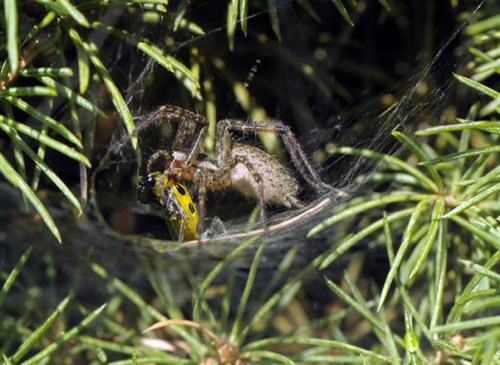 spiders that inhabit these dwarf Alberta spruces. The spiders were