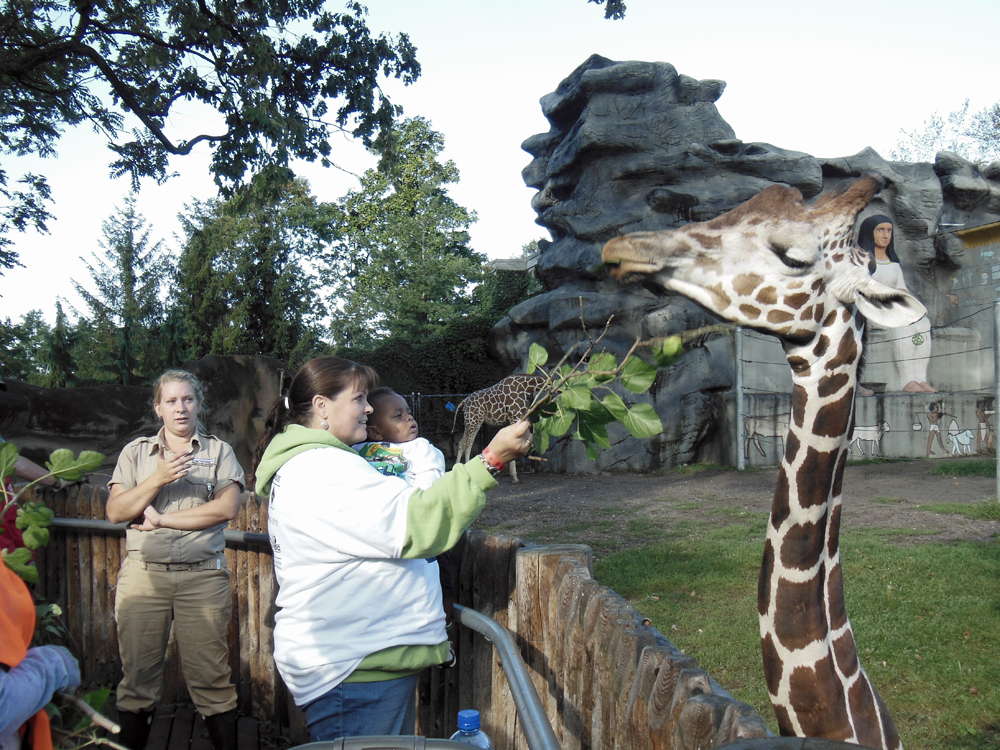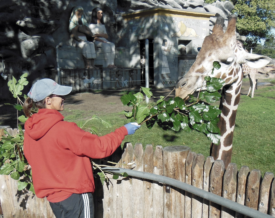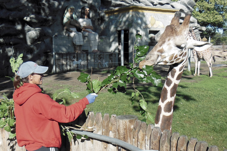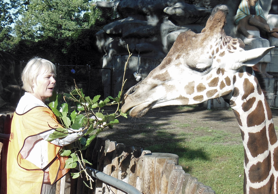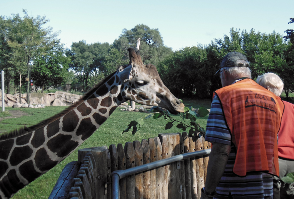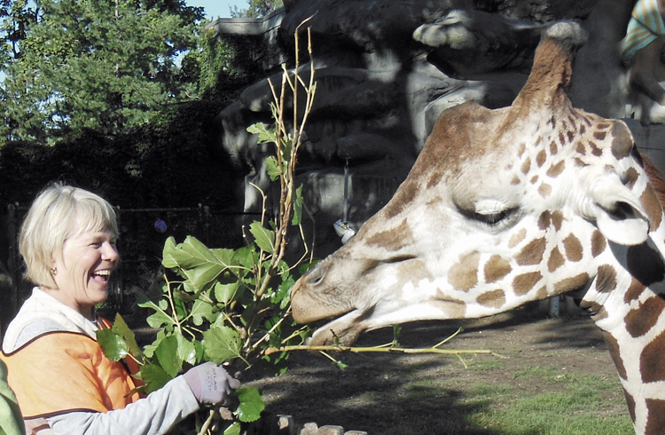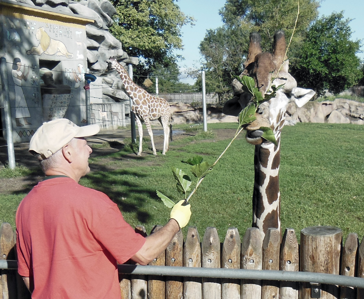 Giraffe seems to smile, "Mmmm mighty tasty branch,