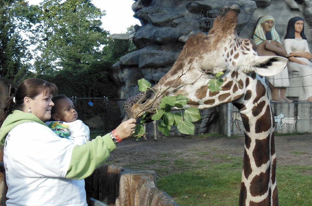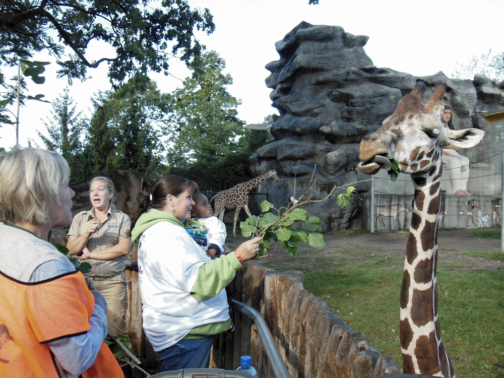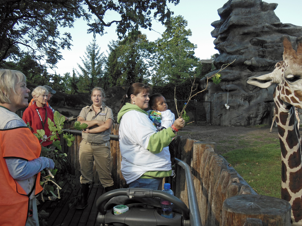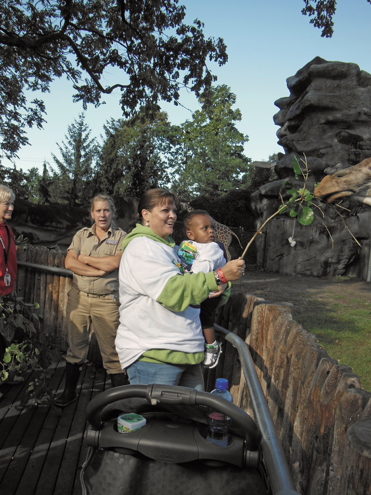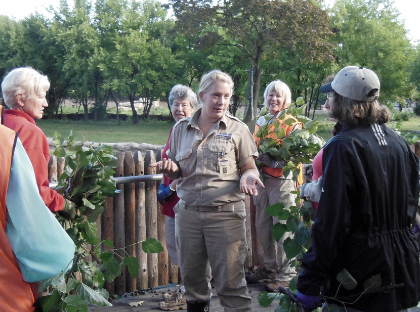 Giraffe seems to smile, "Mmmm mighty tasty branch,