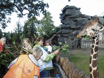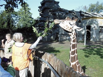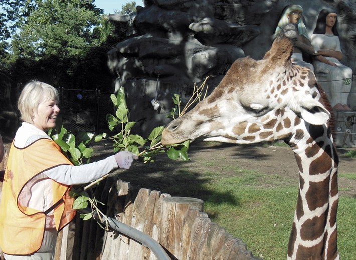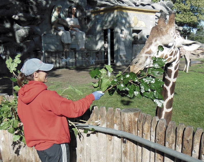 Giraffe seems to smile, "Mmmm mighty tasty branch,