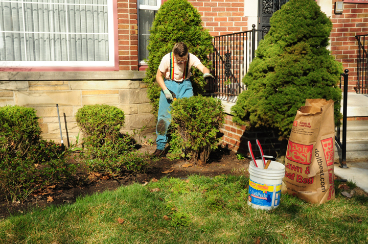 We knew this particular reclamation would take more than a year. Since the client was willing, we set out to return these gold thread false cypresses and globe arborvitaes to pleasing size and form.