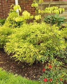 'Gold Mop' false cypresses and globe arbs, reclaimed!
