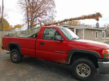 Below, left: A 25' limb from the top comes home. Janet had