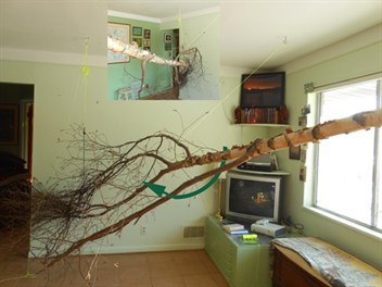 Below: Once up, with twig end unbundled, we prune for less