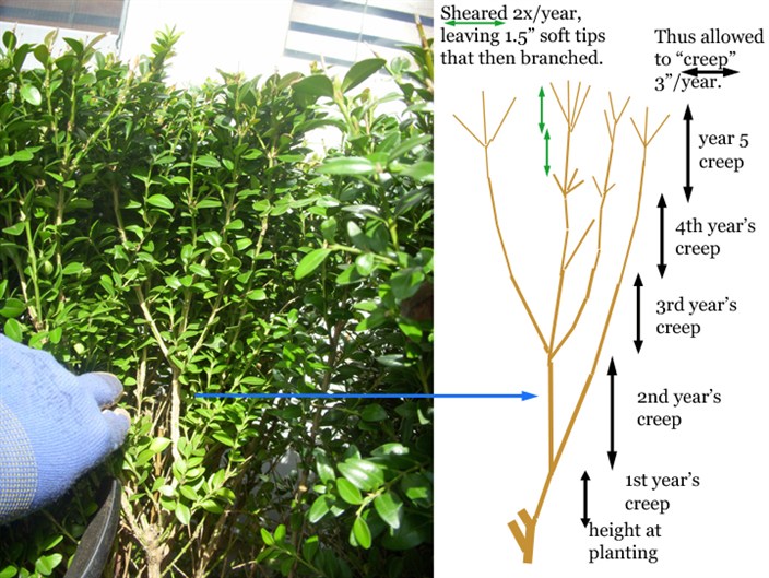 at the blue arrow or lower. Usually lower! Every branch we cut will
