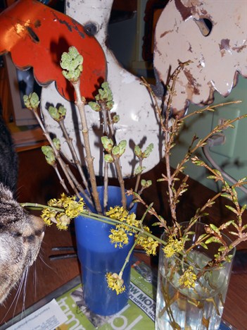 day after being vased. Below, right: Cornelian cherry (Cornus