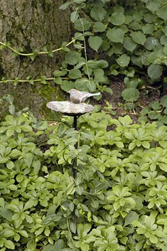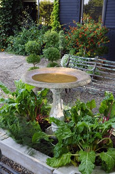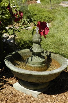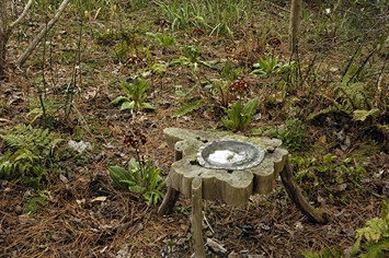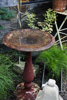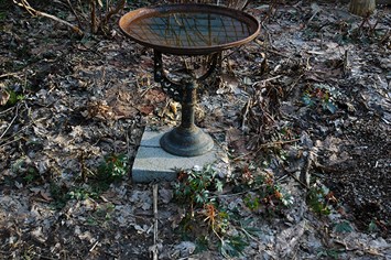 thirsty rabbits cooperated to tip over the bird bath. I kid you