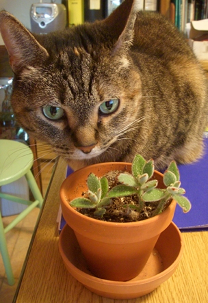 This Kalanchoe tomentosa 'Chocolate Soldier' was a tiny cutting a few months ago. We can be proud it took root and grew, but if we kept its soil warm now while keeping its top cool, it would really put on the growth.