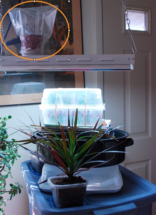 light fixture is warm. Seeds not yet sprouted and dormant woody