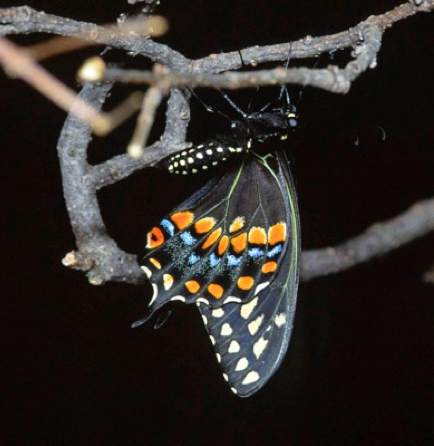 caterpillar on fennel. Below: The adult butterfly just emerged from