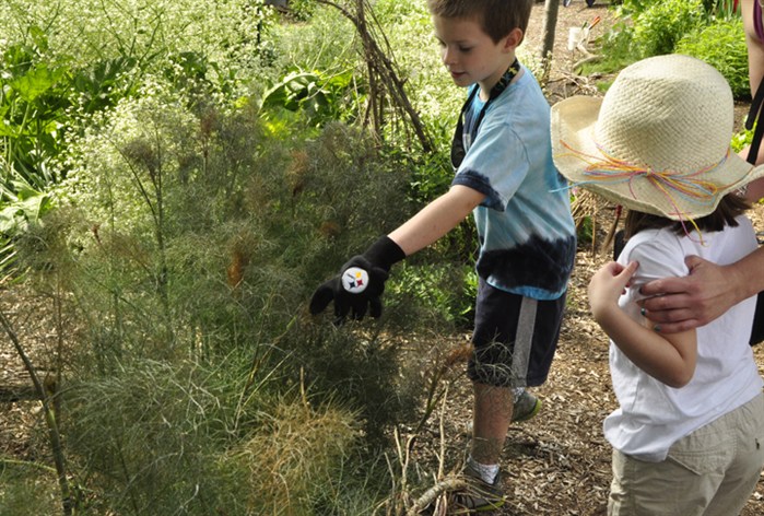kids discover the black swallowtail caterpillars on this fennel at