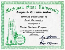 Master Gardener candidate. To become a Master Gardener, s/he must