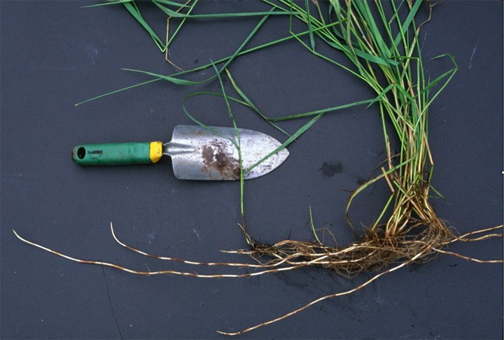 than lawn grass, once it's in, the bluegrass or fescue usually