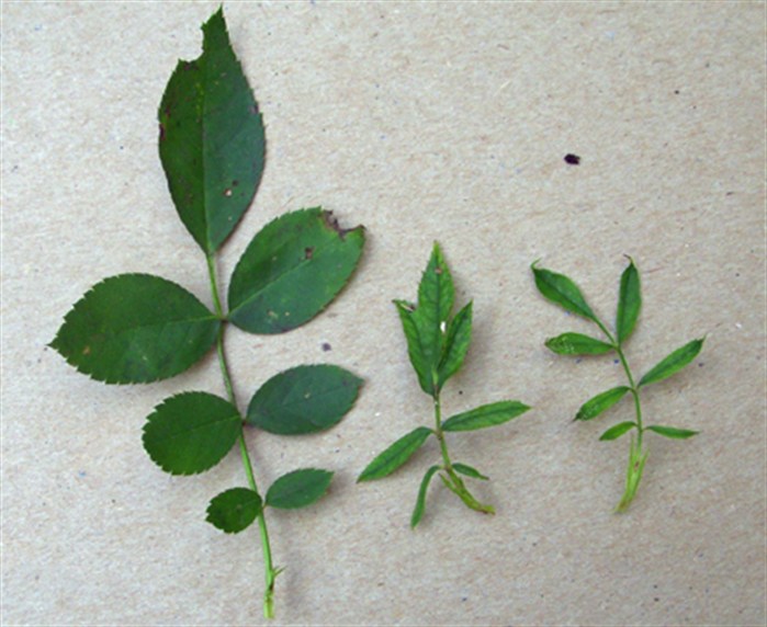 dozen roses from nearby beds that showed rose rosette symptoms that