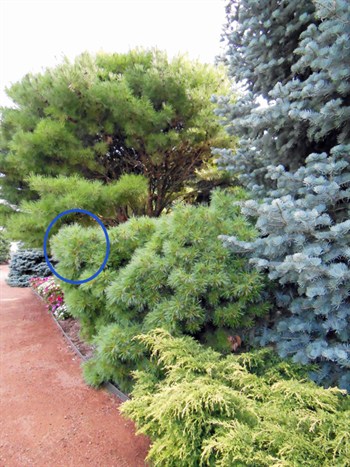 (Pinus strobus 'Nana') can be a bit irregular in growth