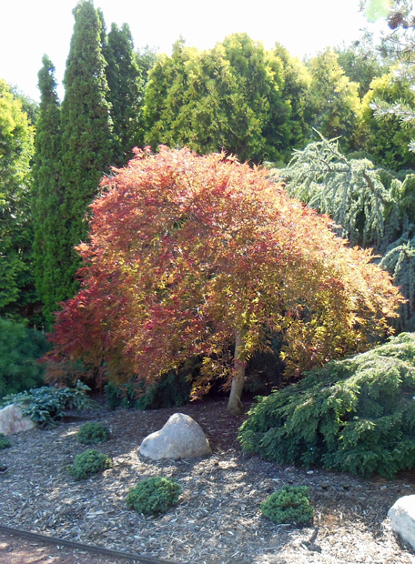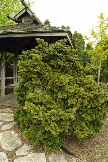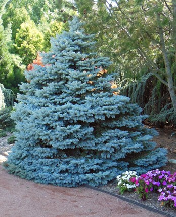 Below: Blue spruces and falsecypresses are such beautiful