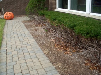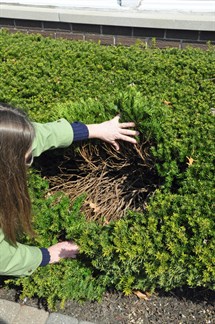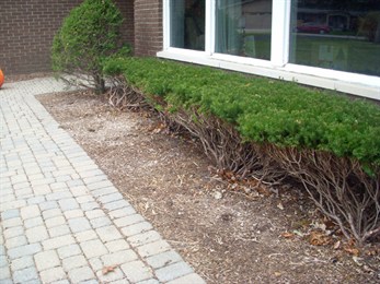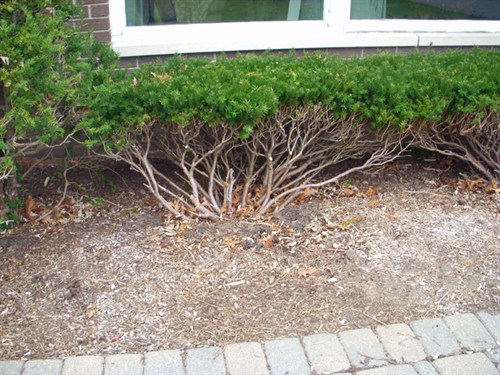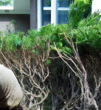 • Cut the shrubs all the way to needleless stubs just a few inches