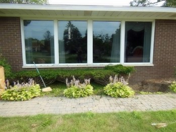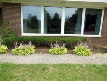 Janet's feet, hostas grow. They lap onto the walk like ketchup